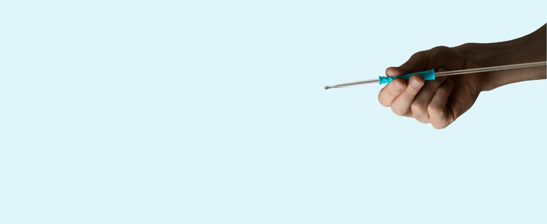 Mužský hydrofilní katétr Flexibilní špička. Bezdotykový úchyt. Připraven k okamžitému použití.